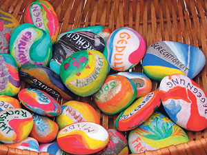 Über 1000 Friedensssteine hat Alfred Bachmair schon bemalt. Seine Steine sind „Miniatur-Kunstwerke“ und haben vielen Besucher/innen schon Freude bereitet. Das vielseitige Sortiment der Friedenssteine wird durch die Impulssteine von Diakon Josef Schwanninger ergänzt. Die Steine, die bei der ersten Station des Weges aufliegen, sind mit Schlagwörtern versehen. „Versöhnung“, „Verzeihen“, „Respekt“, „Toleranz“ und „Güte“ sollen sanfte Botschaften setzen, die zu einem besseren Miteinander führen. www.gruberweg.at