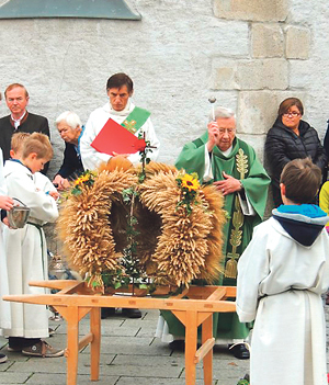 Goldwörth. Eine unvollständige Erntekrone – damit wurde beim Erntedankfest am 13. Oktober 2013 in der Pfarre Goldwörth noch einmal an das Hochwasser vom Juni erinnert. Viele Pfarrbewohner/innen sind von den Hochwasserfolgen weiterhin intensiv betroffen. Dennoch gibt es Grund zu danken, betonte Pfarrer Josef Pesendorfer – und das wurde beim Erntedankfest heuer bewusster als sonst getan. Dabei konnte erstmals wieder das Pfarrzentrum genutzt werden, auch die Pfarrbibliothek hatte nach der mehr als viermonatigen Hochwasser-Pause wieder geöffnet.
