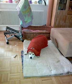 Mittlerweile hab ich Betty, 9 Jahre, eine Scheidungswaise, bei mir aufgenommen. Sie hat einen total anderen Charakter als mein Hund! Das Bild ist bei 40 Grad entstanden, Abkühlung war gefragt, bei Tag und bei Nacht. Leider habe ich die beiden schon so dick bekommen!!! Ich bin immer da, wenn jemand Hilfe für seinen Hund braucht. Jetzt hat meine Tochter einen Hund bekommen, den sie natürlich fallweise auch vorbeibringt. Das gibt Aktionen für meine doch schon älteren Semester, aber ich liebe sie alle und es ist schön, ihnen zuzuschauen, mit ihnen zu leben. Danke.