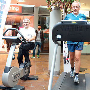 Ziel war, 300 Kilometer für die Errichtung von fünf Brunnen im Kongo zu erreichen. Pro Kilometer spendete die WDL GmbH 30 Euro. Auf Laufbändern und Trainingsrädern sportelte Jung und Alt mit Begeisterung für den guten Zweck. Schließlich wurden 360 Kilometer gelaufen bzw. geradelt. „Die vielen Teilnehmer/innen haben durch ihr Engagement die Wasserversorgung und das Überleben von rund 3500 Menschen im Kongo gesichert“, freute sich DI Christian Hasenleithner (rechts), Geschäftsführer der WDL GmbH, der wie Caritasdirektor Franz Kehrer am Rad auch einige Kilometer beisteuerte.