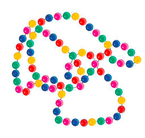 Du brauchst dafür zwei Tassen Mehl und eine Tasse Salz. Dazu gibst du gerade so viel Wasser, dass daraus eine geschmeidige, knetbare Masse wird. Forme nun kleine Perlen, durchstich sie in der Mitte mit einem Zahnstocher und lasse das Ganze bei 150 °C für etwa 45 Minuten im Ofen hart werden. Mit Plakatfarben kannst du die Perlen dann ganz bunt in deinen Lieblingsfarben anmalen. Wenn alles trocken ist, fädelst du die Perlen auf eine Schnur.