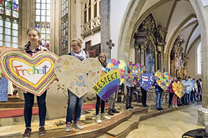 "Verliebt in Berlin" ist der Titel der Ausstellung in der Linzer Galerie KULTURFORMEN des Instituts Hartheim. Bei einem Symposium wurde diskutiert, ob und wie Werke von Menschen mit Beeinträchtigung verkauft werden dürfen.