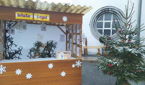 In den Hütten steht jeweils eine Kiste mit Ausmalbildern und Engelsgeschichten, die sich die Kinder mit nach Hause nehmen dürfen.
