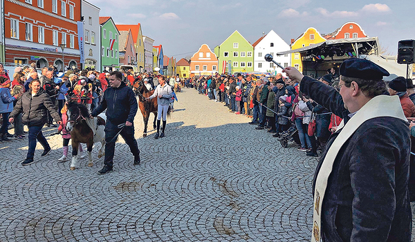 Nach zweijähriger Pause feierte der beliebte Pferdemarkt im März ein gelungenes Comeback. Während Pfarrer Alfred Wiesinger den Pferden seinen Segen spendete (im Bild), ließ der Kutschenfahrer der Brauerei Schnaitl spontan von seinem Gespann aus zwei Tauben in den Himmel aufsteigen. Es sollte eine Friedensgeste in Richtung Ukraine sein.