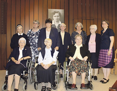 Am Herz Jesu-Fest und am Tag danach, dem Hauptfest der Caritas Socialis, feierten neun Schwestern ihre Weihejubiläen, darunter zwei Oberösterreicherinnen. Sr. Klothilde Gassner (2. v. re.) aus Mönchdorf beging ihr 60-jähriges Jubiläum und Sr. Aloisia Schimpelsberger (hinten Mitte) aus Steyr feierte 50 Jahre ihrer Lebensweihe in der Caritas Socialis. privat