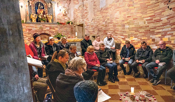 Stattdessen haben 45 Männer und Frauen in der Lorettokapelle von Pfarrkirchen (im Bild) die Meditation abgehalten, die für die Wanderung vorgesehen war. Danach tauschten sich die Teilnehmer/innen an der Meditation in einem offenen und ermutigenden Gespräch mit dem Bischof über das Pfarrleben aus, der anschließend den Gottesdienst in der gut gefüllten Kirche hielt und den Kirtag besuchte.