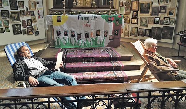 Die Ausstellung der heimischen Wirtschaftsbetriebe hat an die 12.000 Besucher/innen angezogen. Die Pfarre Maria Neustift hat sich mit einer Einladung zum Kirchenbesuch an der Veranstaltung beteiligt. Unter dem Motto „Einakemma und Obakemma“ konnte man in der Kirche auf Liegestühlen rasten und die Stille erleben.