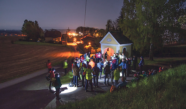 Treffpunkt ist um 22 Uhr in der Marienkapelle des Stiftes St. Florian. Es geht über eine Wegstrecke von ca. 22 km nach St. Marien, das in der Früh erreicht wird.