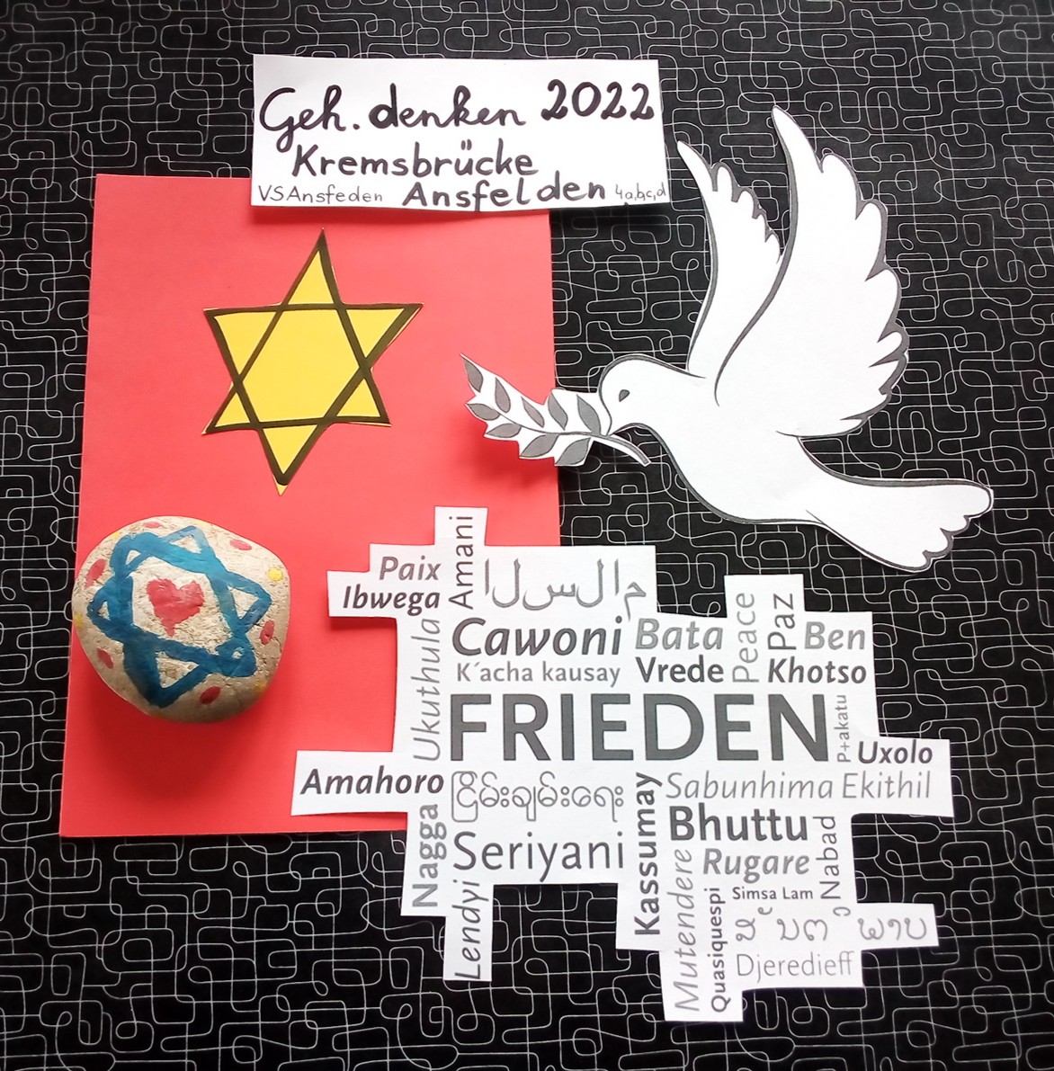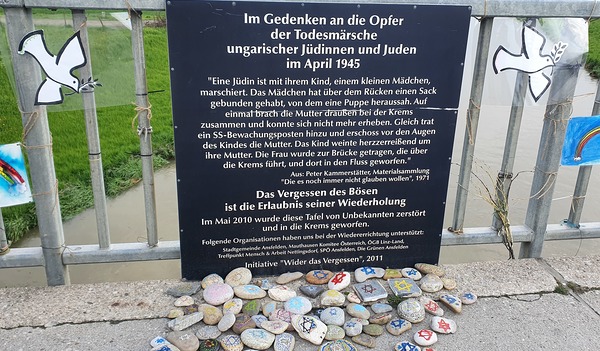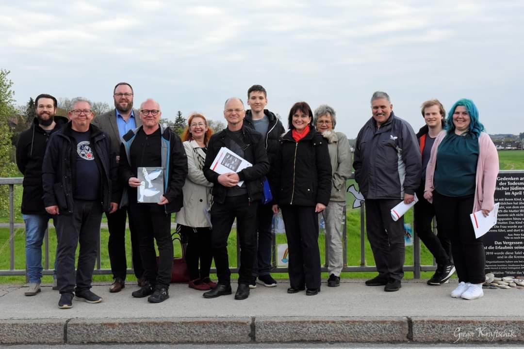 Als über die Gehdenkfeier hinaus sichtbares Zeichen der Sehnsucht nach einer friedlichen Welt und Gesellschaft wurden bei der Gedenktafel an der Brücke Friedenstauben von den Teilnehmer*innen angebunden.