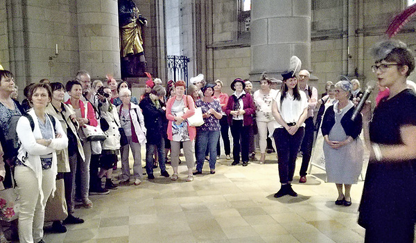 Dort erzählten 30 Domfrauen – an verschiedenen Plätzen im Dom verteilt – ihre Geschichten: was sie mit dem Gotteshaus und dem ausgewählten Ort verbinden, welche Erfahrungen und Erlebnisse sie als Frauen im Dom und in der Kirche bis heute gemacht haben, was Glaube ihnen bedeutet. Die Kunstschätze im Dom – vom Nasenflötenbär, den Glasfenstern bis zur Rudigierorgel – spielen dabei eine wichtige Rolle. Die Vielfalt der Frauen und berührende Erzählungen beeindruckten die Besucher/innen bei der Premiere. Beim Pflasterspektakel am 20. Juli sind die Domfrauen wieder im Einsatz.