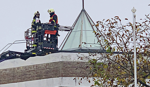 Leonding-St.Michael. Etwa 75 Feuerwehrleute und zehn Helfer/innen des Roten Kreuzes probten kürzlich den Ernstfall. In Erinnerung an den großen Brand von Notre-Dame in Paris kam die Anfrage für den Übungseinsatz der Freiwilligen Feuerwehr Rufling an die Pfarre. Übungsannahme war ein Brand des Dachstuhls während einer Andacht in der Kirche. Die Feuerwehrleute mussten nicht nur von außen löschen, sondern auch mit Atemschutzgeräten in das Innere der Kirche vordringen und von dort Menschen bergen.