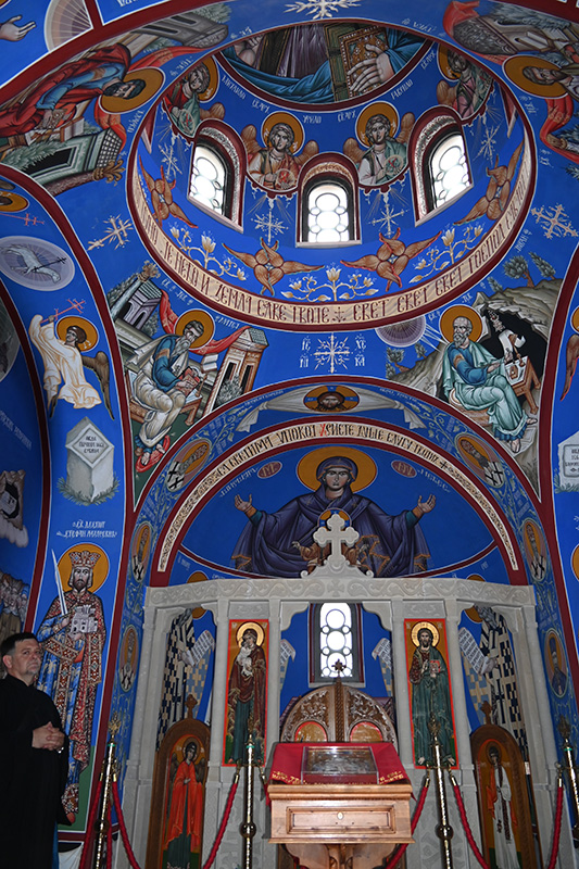 Als der Diözesanbischof von der Epidemie im „Serbenlager“ erfuhr, besuchte er die Gefangenen, steckte sich dabei an und verstarb am 5. März 1915. „Er hat gezeigt, dass es ihm wirklich um das Evangelium ging“, betonte der Patriarch. Hittmair ist daher in der neuen Kapelle – was für die orthodoxe Kirche ungewöhnlich ist – ein großes Fresko gewidmet. Es stellt Hittmair als barmherzigen Samariter dar.