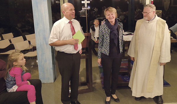 Heute heißt das Seminar „Beziehungs-Kompetenz-Training für junge Paare“ und erstreckt sich über ein halbes Jahr. Zum Jubiläumsfest am 10. November 2019 kamen an die 60 „Absolventen“-Paare, insgesamt haben den Kurs 193 Paare mitgemacht. Gar nicht wenige von ihnen treffen sich weiterhin in ihren „Jahrgangsgruppen“. Paul Neunhäuserer (links), für die Ehevorbereitung in der Diözese zuständig, dankt Angela Parzer (Mitte), die mehr als zwanzig Jahre den Kurs geleitet hat und Seelsorger Franz Harant für sein Engagement.