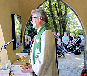 Anlässlich 150 Jahre Alpenverein: Messe am Fuße des Plassen.