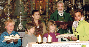 Beliebt sind die Kinder-Wort-Gottes-Feiern in der Pfarre Ungenach. 32 Kinder kamen erst kürzlich mit ihren Eltern in den Turnsaal des Kindergartens, um vom großen Wert der Freundschaft zu hören.