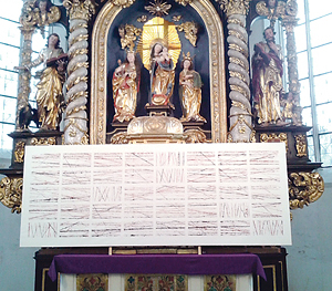 Gemeinsam mit Manfred Pohn, einem Künstler aus der Pfarre , gestaltete der Liturgiekreis der Pfarre Zell am Pettenfirst ein großes Fastentuch.