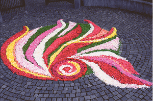 Mit zigtausenden Blütenblättern gestaltet Sr. Maria Priska mit ihren Mitschwestern in Zams in Tirol jedes Jahr zu Fronleichnam einen prächtigen Blumenteppich.