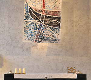 Für das Fest des Hl. Petrus am 29. Juni gestaltete Christine Mayr-Lumetzberger ein neues Altarbild mit dem Titel „Schiff“ für die Pfarrkirche Linz-St. Peter.