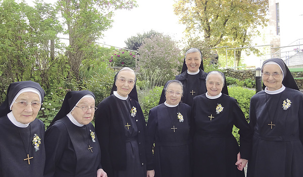 Sr. Johanna Franziska Kronsteiner von Großraming (von links); Sr. Willibalda Emeder von St. Georgen im Attergau; Sr. Judith Waldl von Wimsbach; Sr. Ludwiga Hanner von St. Stephan am Wald; Sr. Christophora Schuster von Pennewang und Sr. Meinharda Wögerbauer von Rohrbach. Mit den Jubilarinnen freute sich Provinzoberin Sr. Gabriele Schachinger (zweite Reihe).