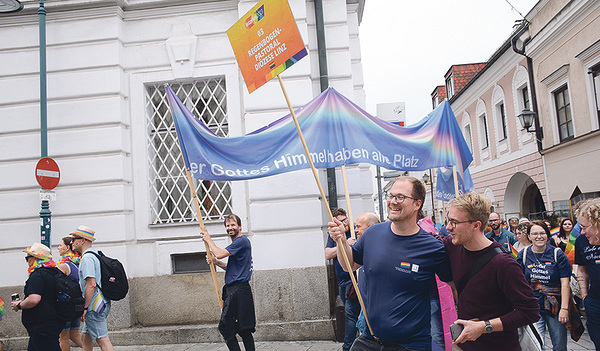 Vertreter:innen der Diözese Linz nahmen im Sinne einer „klaren Solidaritätskundgebung“ teil. „Viele Menschen teilten ihre Freude darüber mit uns, dass die Kirche mit der Teilnahme an der LinzPride eine Offenheit signalisiert. Andere ärgerten sich allerdings darüber, wie in der Kirche immer wieder diskriminierend agiert wird“, berichtet Paul Neunhäuserer. Er ist verantwortlich für die Regenbogenpastoral der Diözese Linz.