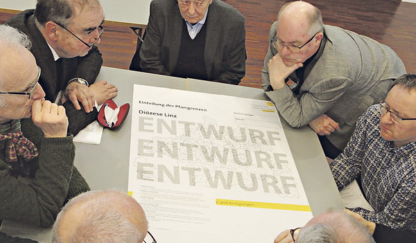 Die derzeit im Zukunftswege-Prozess „Kirche weit denken“ vorgesehenen 35 Pfarren in Oberösterreich sind keine „Oberpfarren“. Sie sollen für die „Zwischenräume“ der jeweils zugeordneten Pfarr-Gemeinden da sein. Generaldechant Slawomir Dadas stellte dies bei der Dechantenkonferenz im Bildungshaus Schloss Puchberg letzten Donnerstag klar. Die Pfarren sollen Aufgaben und Angebote übernehmen, die die Pfarr-Gemeinden nicht mehr leisten können – und zusätzlich gemeinsame Akzente aller Pfarr-Gemeinden setzen. Bei den Dechanten ging es, ebenso wie tags zuvor beim Priesterrat im Linzer Priesterseminar, vor allem um die neuen Rollen der Seelsorger und des hauptamtlichen Personals. Sowohl die Pfarren als auch die Pfarr-Gemeinden sollen „kooperativ“ geleitet werden, nämlich in Leitungsteams. Diskutiert wurde, ob es nicht trotzdem eine Letztverantwortung geben müsse.