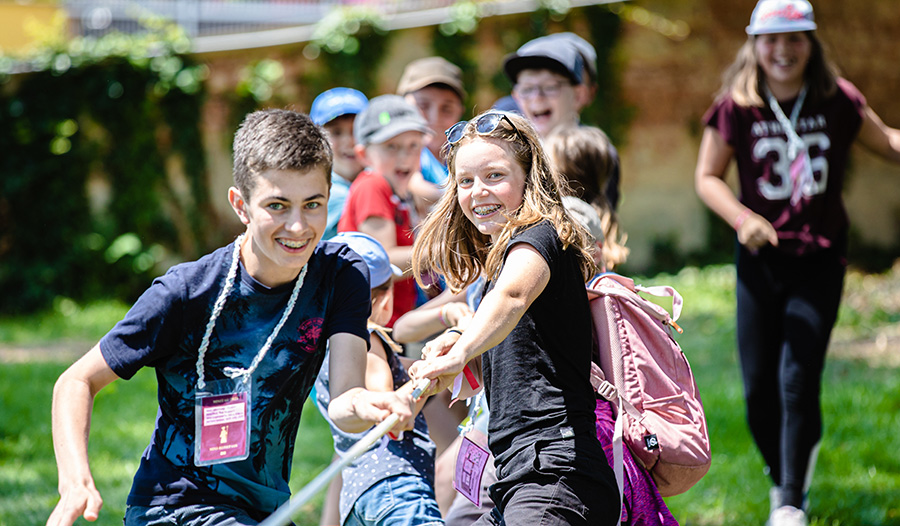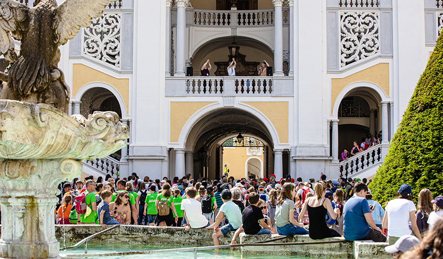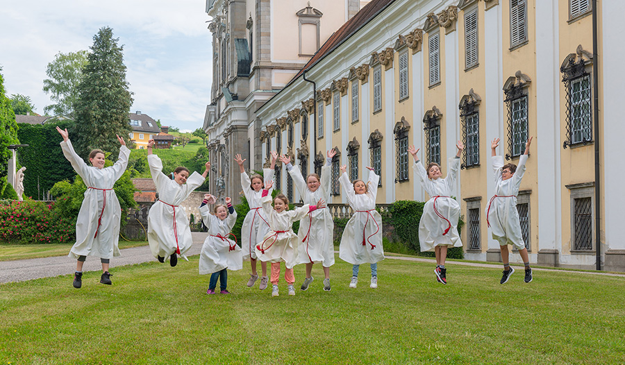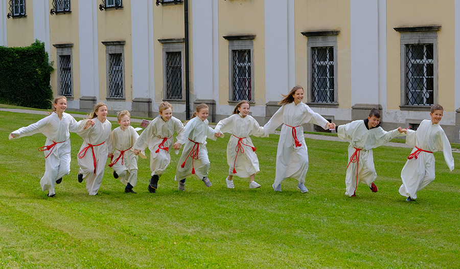 Nach dem Gottesdienst verwandelte sich das Barockstift in eine Spielestadt mit unterschiedlichen Stadtvierteln. „Wir haben eine Führung bei den Chorherren bekommen, das war sehr interessant. Die Spielstationen, das Seilziehen, Limbo und das Gletscherspringen waren besonders toll. Mir hat der Tag heute so gut gefallen. Ich hoffe, so einen Tag gibt es bald wieder“, erzählt Liara (10) aus der Pfarre St. Martin im Mühlkreis.