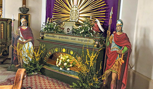 Laut biblischem Bericht sollten Soldaten das Grab vor dem Diebstahl des Leichnams Jesu sichern, im Laufe der Geschichte sind sie – wie hier in Schardenbergs Pfarrkirche – zu einer Art Ehrenwache für den auferstandenen Christus mutiert.