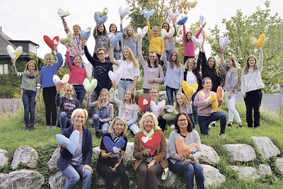WRG der Franziskanerinnen Wels. Bereits zum dritten Mal beteiligten sich 152 Schülerinnen und zwei Schüler des WRG der Franziskanerinnen an dem Sozialprojekt für Brustkrebspatientinnen. Im Textilen Werkunterricht fertigten sie mit ihren Lehrerinnen Silvia Kucher, Edith Glück und Doris Bauer 376 Herzkissen. Die Schüler/innen verfassten für jeden einzelnen Polster einen kleinen Brief, der mit ganz persönlichen Worten den Patientinnen Mut und Kraft in dieser schweren Zeit zusprechen will. Eine Delegation von Schülerinnen überbrachte mit Lehrerinnen und Elternverein am