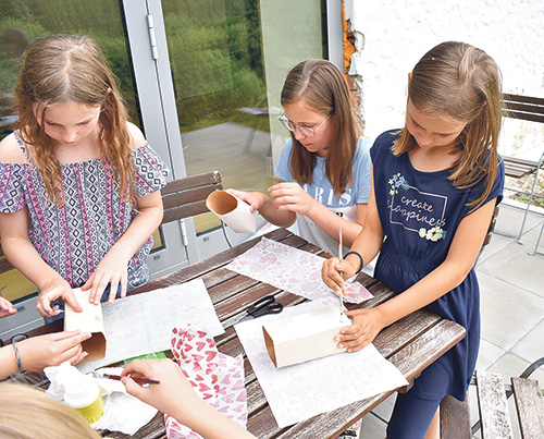 Die Woche ist mit verschiedenen Programmpunkten gefüllt. Bei den Workshops basteln die Kinder beispielsweise Tongirlanden, und bei spielerischen Stationen lernen die Ministrant:innen die vier Aufgaben der Kirche: Liturgie, Diakonie, Verkündigung und Gemeinschaft. Das eindeutige Highlight der Kinder bleibt aber die Ministadt. Hier verdienen die Minis bei Stationen Spielgeld, mit dem sie sich bei anderen wiederum etwas kaufen können. So kann ein Kind in der „Minibar“ beim Zubereiten von Fruchtspießen helfen und sich später in der „Chill-Lounge“ eine Gesichtsmaske auftragen lassen.