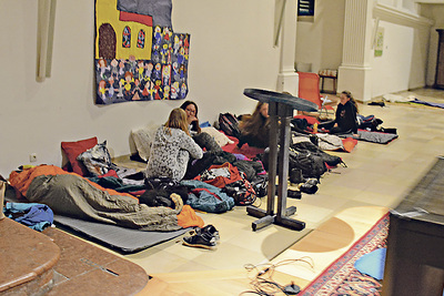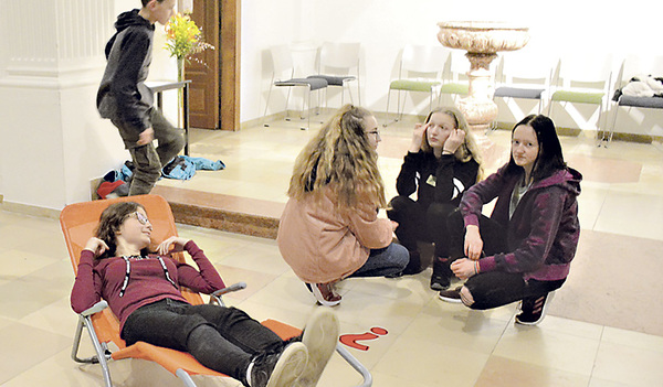 Sie lauschten einer Klangschalenperformance und durften im Anschluss daran selber probieren. Die Jugendlichen gestalteten Polster mit einem Segenszuspruch und schrieben einen Brief dazu, was sie sich für ihre eigene Zukunft wünschen. Auf Polster und Brief hin schliefen sie zwar kurz, aber tief und fest und natürlich warm eingepackt im über 300 Jahre alten Kirchenraum. Mit der Gewissheit, dass Gott bis ans Ende mitgeht und einen nie verlässt, gingen die Burschen und Mädchen wieder auseinander.