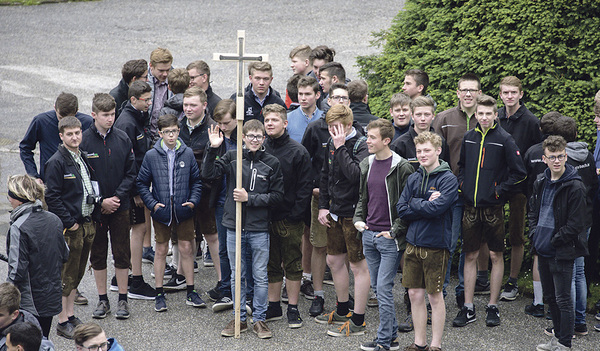 Auch Bischof Manfred Scheuer wanderte ein Stück weit mit. Das Motto der mehrere Monate lang vorbereiteten Sternwallfahrt war „Der Stein schwimmt“, eine Referenz an den heiligen Florian mit seinem um den Hals gebundenen Mühlstein. Auch heute erinnert Florian daran, dass Christ/innen sich für andere einsetzen müssen, auch wenn dies nicht unbedingt persönliche Vorteile mit sich bringt. Bildlich gesprochen sei Florian also nicht untergegangen, so die Wallfahrtsorganisatoren.