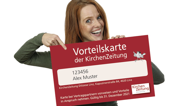 "Die neue Vorteilskarte ersetzt damit den KiZ-webClub und ermöglicht nun ein unkompliziertes Einlösen der Vorteile", freut sich Birgit Kubik, Initiatorin der KiZ-Vorteilskarte. "Und wir können dadurch unseren Jahresabonnentinnen eine noch breitere Palette an attraktiven Vorteilen bieten." Sämtliche Vorteile sind topaktuell zu finden auf www.kirchenzeitung.at/vorteilskarte.