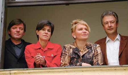 Drei Leitungsmitglieder von Schloss Puchberg verlassen das Haus