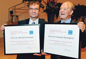 Der Theologische Preis der „Salzburger Hochschulwochen“ ging heuer an das Brüderpaar Christoph und Michael Theobald. Am 30. Juli wurde den in Tübingen und Paris lehrenden Theologen der mit 5000 Euro dotierte Preis zur Würdigung ihres theologischen Gesamtwerkes in der Großen Aula der Universität Salzburg überreicht.