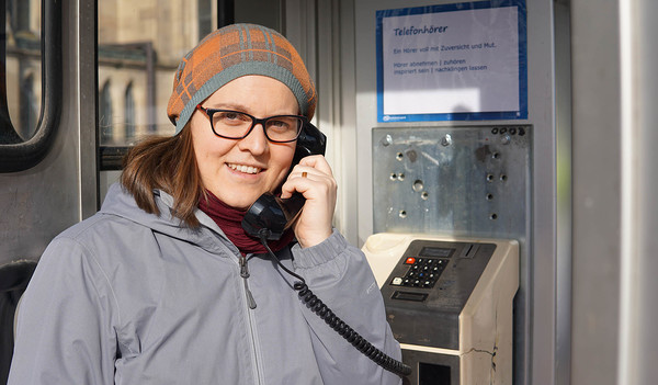 Bei der Aktion der Katholischen Jugend auf dem Domplatz kann man auf den ersten Blick sehen, dass das Angebot ankommt. Menschen nutzen die Gelegenheit zum Innehalten, etwa zum Hören einer guten Botschaft und zum Sich-beschenken-Lassen mit Bibelworten, die auf ansprechend gestaltete Holzplättchen gedruckt sind.