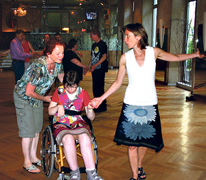 „Only You“ (The Platters) bringt die Tanzschüler/innen an ihrem vierten Kursabend in rhythmischen Schwung. Tanzlehrerin Christine Krenn zeigt Übungsschritte vor: Side Step, Side Schluss: In der Tanzschule Horn sind Menschen mit Beeinträchtigung zu Gast.