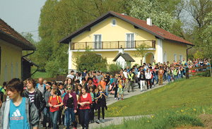 Beeindruckende Bilder boten sich den Menschen zwischen Dachsberg und Eferding, wenn sie an diesem 30. April vormittags aus ihren Häusern blickten. Eine schier endlos scheinende Schülerschar stapfte über Wege und Straßen.