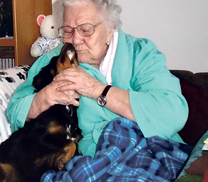 „Ohne die Holly würde ich nicht mehr leben“, sagt Charlotte Holzer und streichelt dabei sanft das seidige Fell der kleinen Mischlingshündin, die sich auf der Eckbank ganz dicht an die 89-Jährige kuschelt.