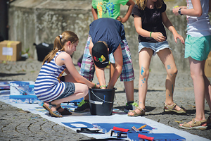 Das größte Jungscharlager Österreichs findet diese Woche in Linz statt. 1300 Buben und Mädchen können in sechs Erlebniswelten viel entdecken. In der Kaleido City schlüpfen die Kinder in die Rolle von Bäckern, Bankangestellten oder auch Straßenmusikern und verdienen sich so ihr Geld.