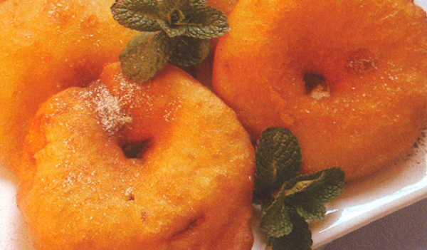 Die Benediktinerinnen von Steinerkirchen an der Traun nehmen für den Backteig übrigens folgende Zutaten: 250 g Mehl, 350 ml Milch, 3 Eier (Dotter und Eiweiß getrennt), Vanillezucker und 1 Prise Salz. Der Eischnee wird extra geschlagen und untergehoben - eine besonders feine Variante (dazu auch das Foto).