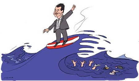 07.11.2000 Wochenkarikatur Innenminister Strasser bewährt sich als Wellenreiter mehr: Wochenkarikatur