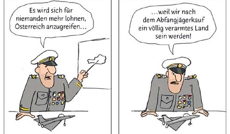 30.07.2002 Wochenkarikatur Österreich überrascht mit einer völlig neuen Verteidigungs-Strategie. mehr: Wochenkarikatur